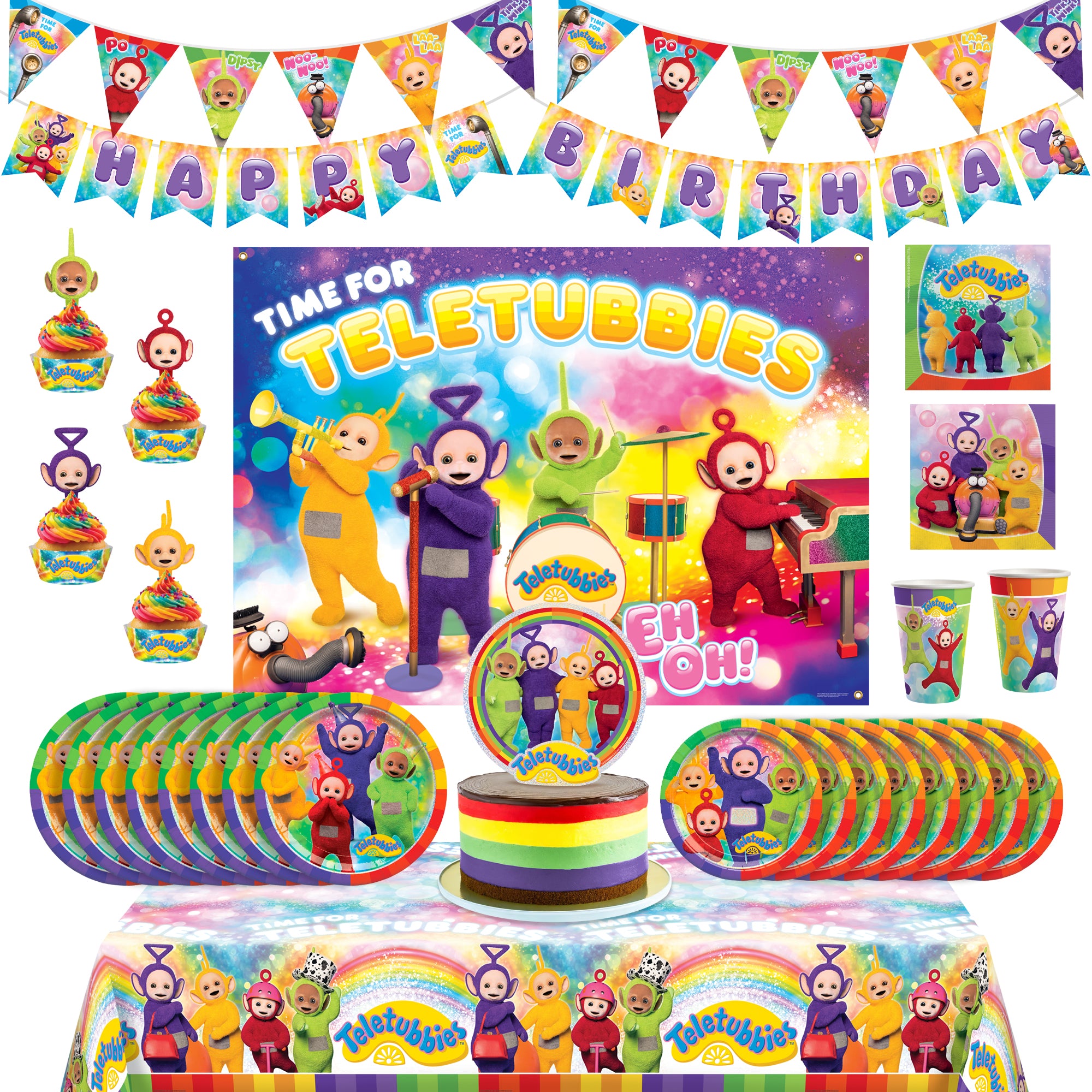 Host a party of messy fun with these Teletubbies party decorations! Tinky Winky, Dipsy, Laa-Laa, and Po are here to make your special day go "Eh-oh!" with our colorful Teletubbies birthday party supplies. Perfect for giggles and fun, these Teletubbies party supplies will make everyone say "Time for Teletubbies!" Get ready for a magical party with lots of hugs and Tubbly-wubbly joy! Check out our store for more authentic Teletubbies decorations, including backdrops, balloons, banners, and more!